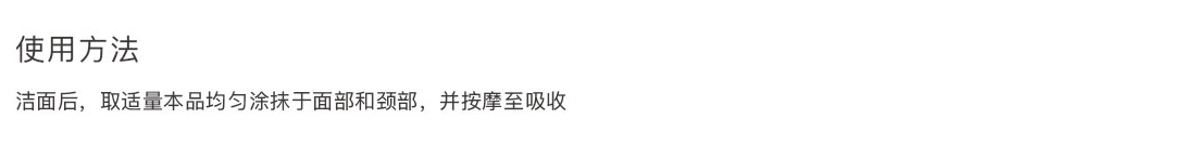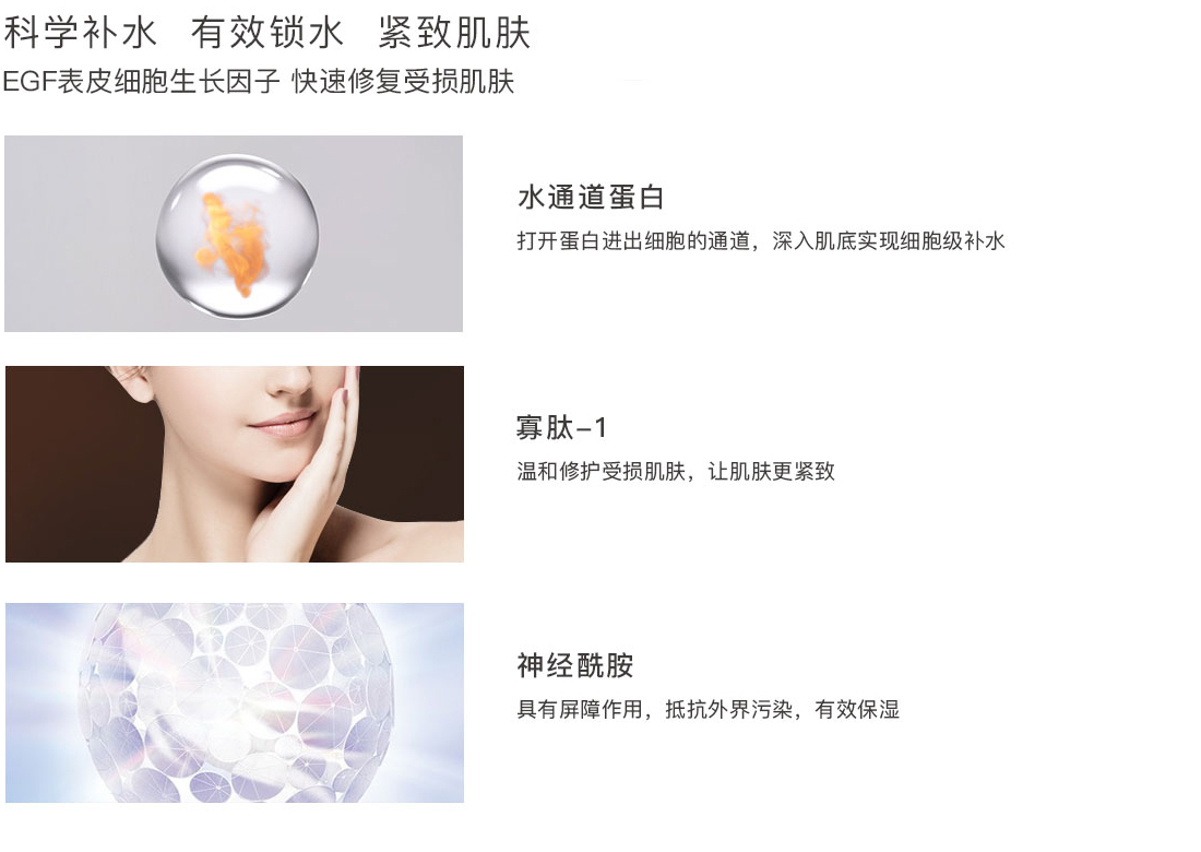 適用肌膚:科學補水,有效鎖水,緊致肌膚